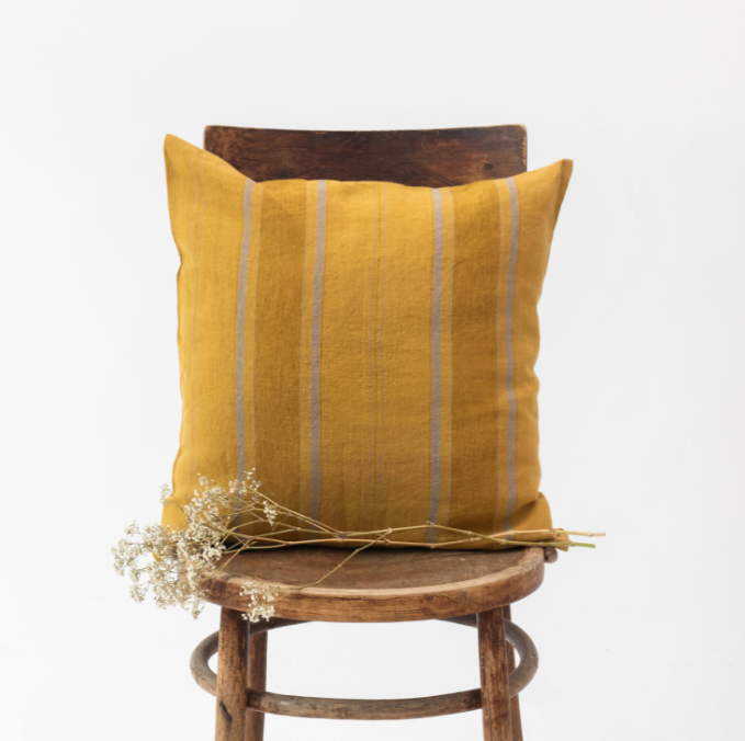 Këllëf jastëku prej liri me vija “Amber Bronze”